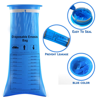Aangepaste Pe Blue Afval Wegwerp Barf Mission Bags Kids Adult Emesis Braaksel Puck Tassen Voor Reizen Auto Ziekte